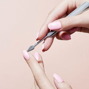 Nail care: Clipping, filing and smoothing of cuticles and toenails polish on.